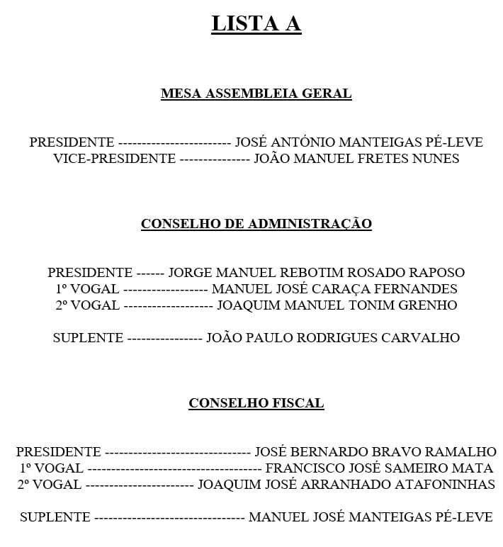 LISTA A - Corpos Sociais / Quadriénio 2025/2028